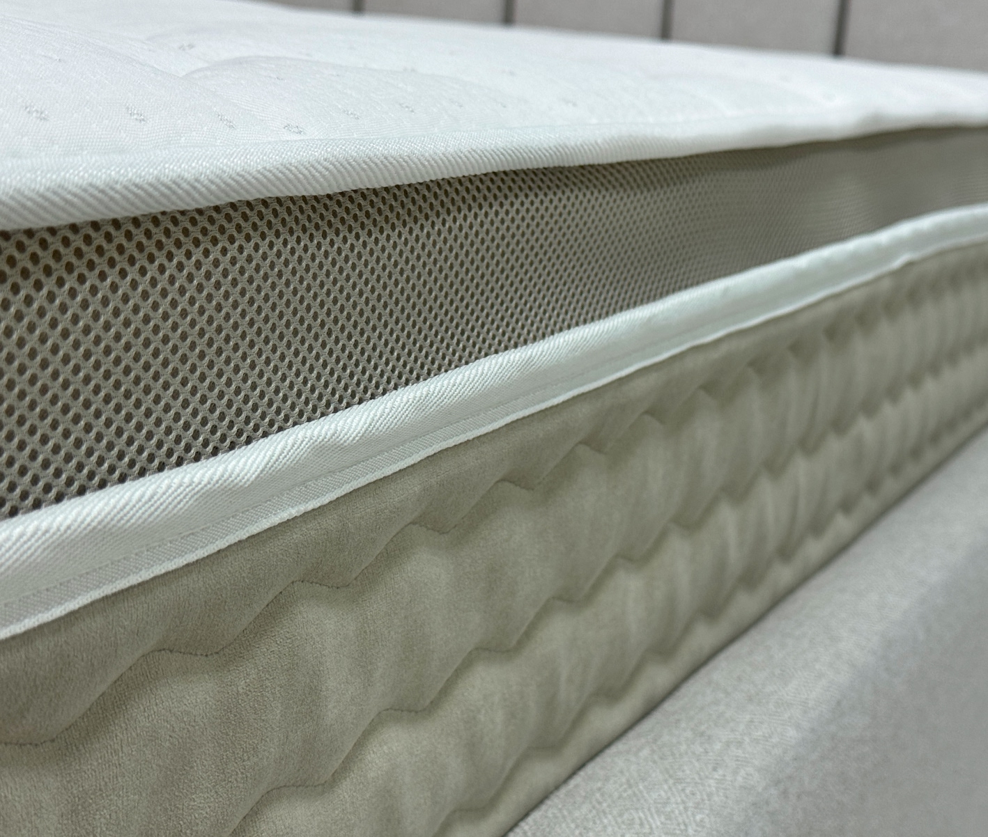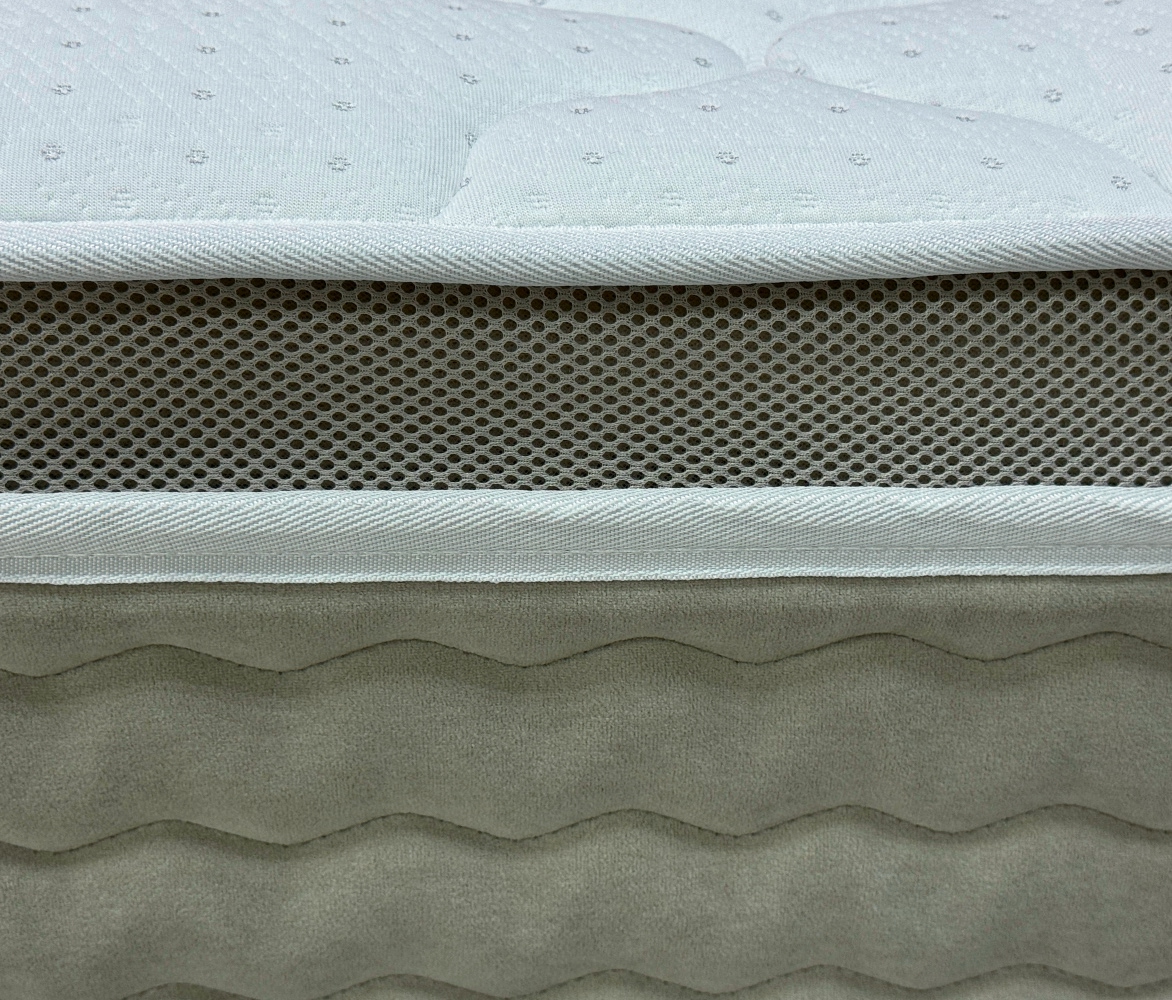Евротоппер в матрасе позволяет увеличить высоту модели и применять разные материалы в бурлете. Объемная 3D сетка, расположена непосредственно под верхним чехлом, что обеспечивает существенно лучшую вентиляцию спального места.